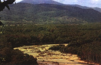 Берега реки в Приморье после прохождения паводка завалены стволами деревьев.