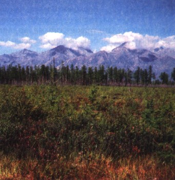Кустарниковые заросли — ерники на болоте. Нарекая котловина в Забайкалье.