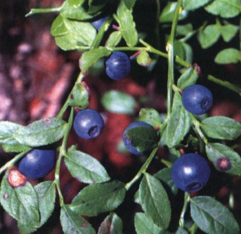 Черника — распространённый в таёжных лесах ягодный кустарничек.