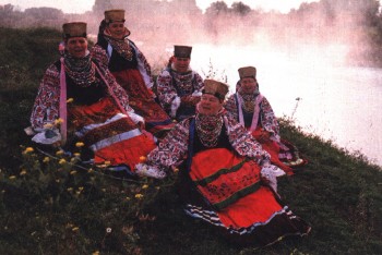 Участницы народного хора в традиционных южнорусских костюмах. Липеикая область.