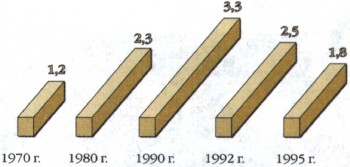 Производство пластмасс и синтетических смол в России (млн тонн).