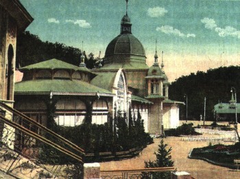 Курорт Железноводск, знаменитый своими лечебными водами. Раскрашенная фотография начала XX в.