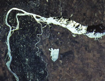 Нижняя Волга в районе Волгограда. Вид из космоса.