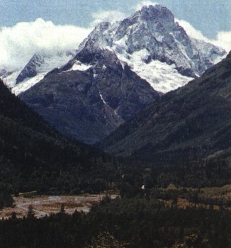 Ущелье и вершина Аксаут в горах Карачаево-Черкесии.