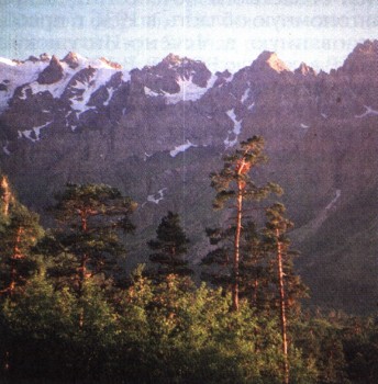 Цейское ушелье в Северной Осетии. Панорама Бокового хребта.