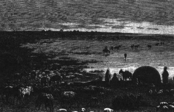 Берег Каспийского моря. Старинная гравюра.