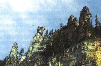 Алданские «двориы» — разрушенные известняковые скалы на правом берегу реки.